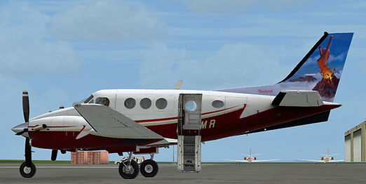 The Hawaiian operation of RMAG bases at Kona and Lahaina, and caters to high-end golfers. Destinations correspond to real-life courses playable in Links 2003 (still one of the best golf sims out there, and with an active user community). Both Daniel Inouye International (PHNL) and Kalaeloa (PHJR -where MillionAir has FBO) airports are used to serve the state's capital city. The Daher-Socata TBM family and Beech King Air family of aircraft are used, with FSX/P3D paints pictured. The King Airs feature the Hawaiian fire goddess, Pele on the tail, in a form that befits a mountain turning red with molten lava. The B200 is available in the RMA download package, and the C90B is found here. Textures for the TBM 850 are here. All of these models are Carenado payware, but with the C90 being a default aircraft for X-Plane 10+ and higher editions of MSFS2024, and the TBM 930 being a default aircraft for MSFS2020 and 2024, there's plenty of options for pilots on these platforms. Those short runway lengths at Hanalei, Lahaina and Kamuela must be considered. Find a livery that resembles what you see here for the type(s) available to you. If you want a bit of vintage flavor, the private livery of the freeware L10-A Electra might be for you. She can carry two foursomes, their clubs and luggage. MSFS20/24 Aeroplane Heaven payware users, fly the private "Bata" livery. Enjoy your flights in Pele's Pacific paradise.
